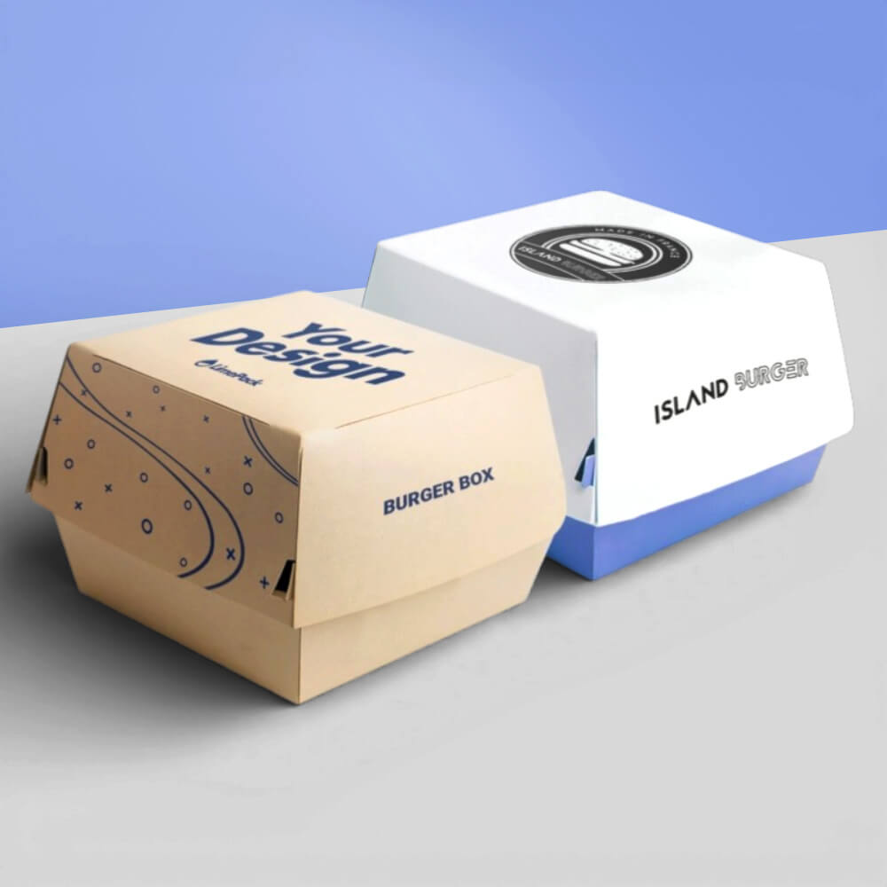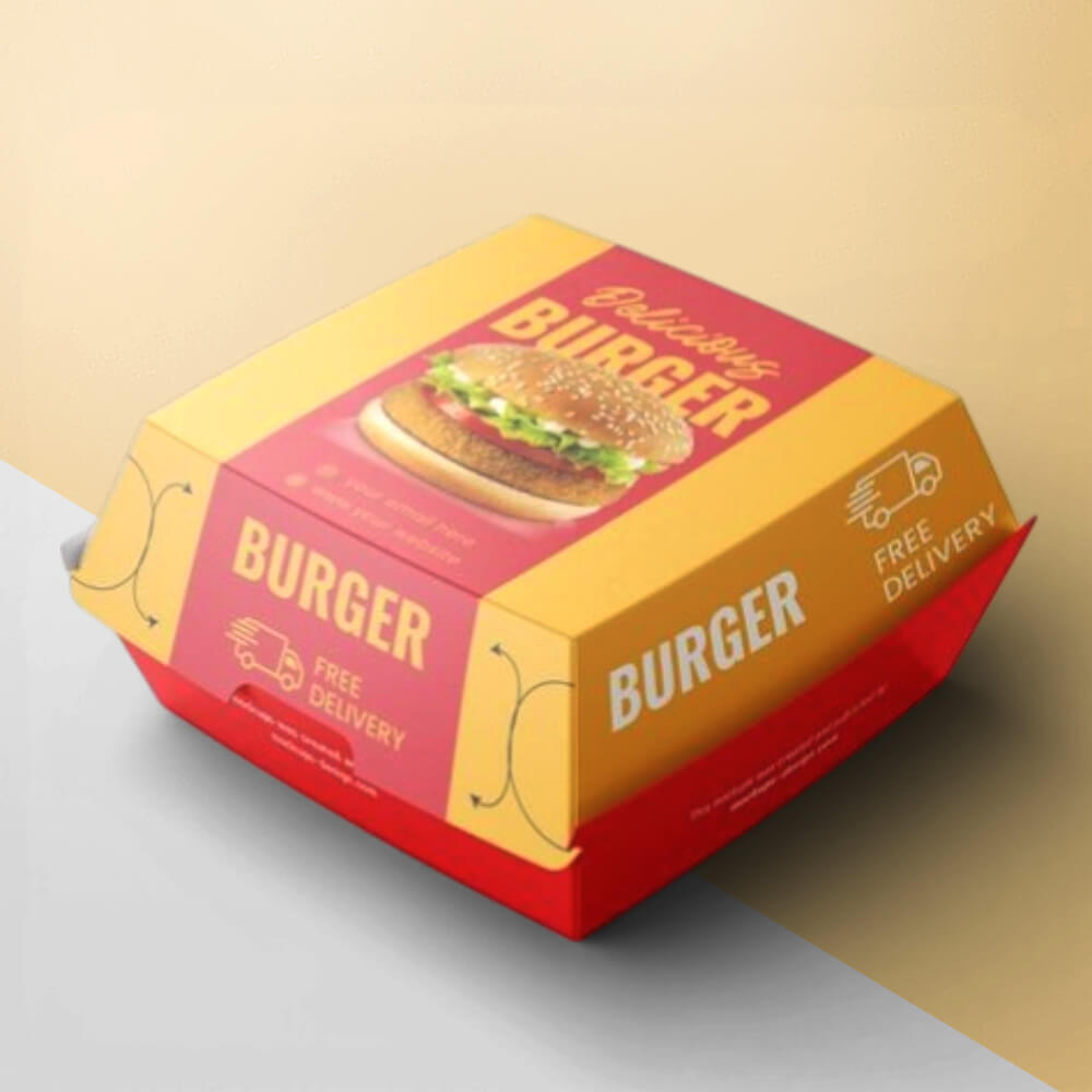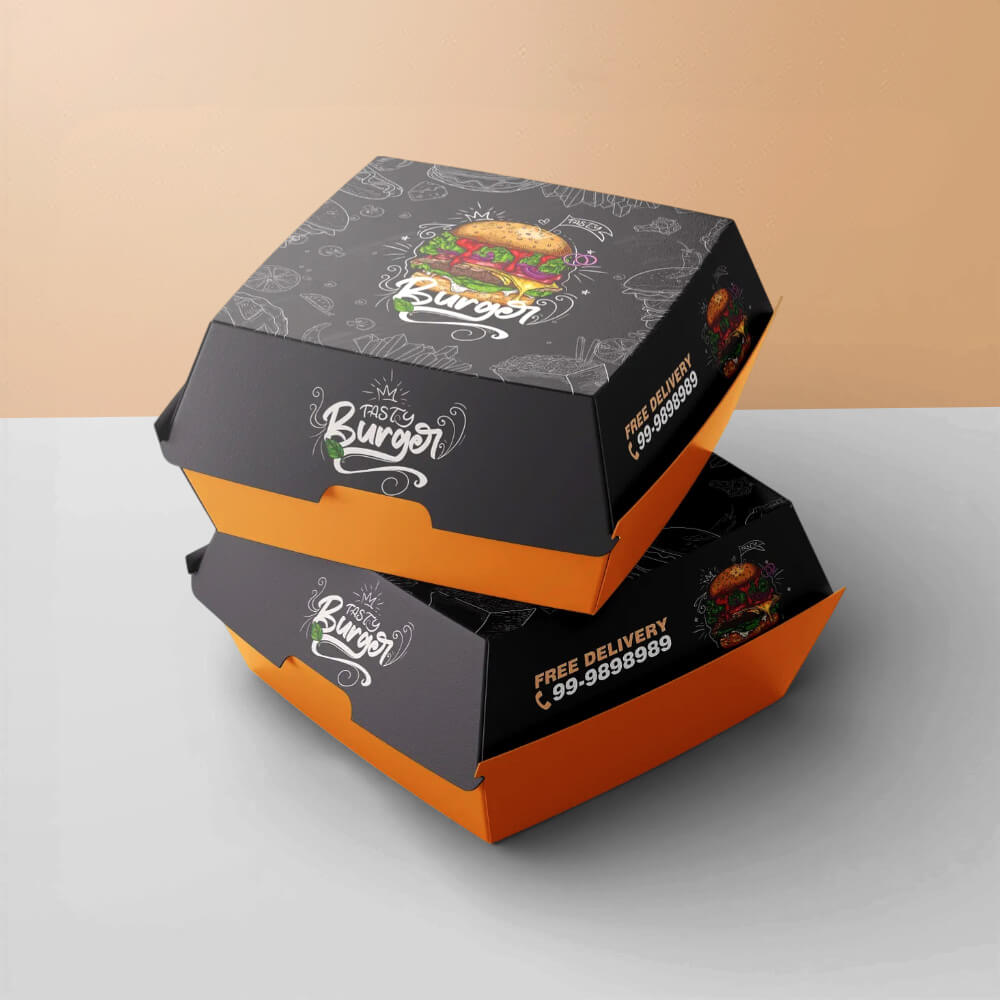 You can promote your burgers by printing your burgers, fast food brand name, logo, and design on your boxes. These boxes can be designed for all kinds of burgers like: zinger burger boxes, beef burger boxes, and more.