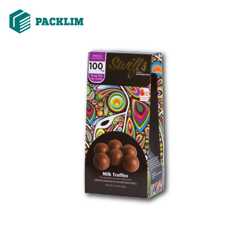 Get custom cannabis chocolate boxes to make a unique identity for your cannabis chocolates. These boxes protect the integrity of the product. They don’t have any chemical interaction with your chocolates. The chemical inertness of the boxes offered by Packlim accounts for their resistance to changing the composition of the products packed in them. In our cannabis chocolate boxes, there is no toxic material that can react with the chocolate or the cannabinoids (THC, CBD). The core inert materials available at Packlim include food-grade cardboard, recycled paper board, and biodegradable printing inks. Through these quality materials, we ensure your chocolates maintain their flavor, potency, and overall quality.