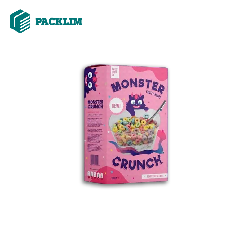 Packlim is the best cereal packaging company that crafts cereal boxes for your favourite breakfast grains. They offer a blank canvas for creativity and self-expression. These boxes hold an important place in the marketplace. Their cardboard rectangles stand out on the shelves. A cereal box is a symphony of images, shapes, and colours to attract customers. Convey the essence of boxes through vibrant illustrations and sleek typography. Small cereal boxes are adorned with playful characters and whimsical landscapes. They are appealing to a younger audience. Whereas, larger boxes have sophisticated designs to attract health-conscious adults.