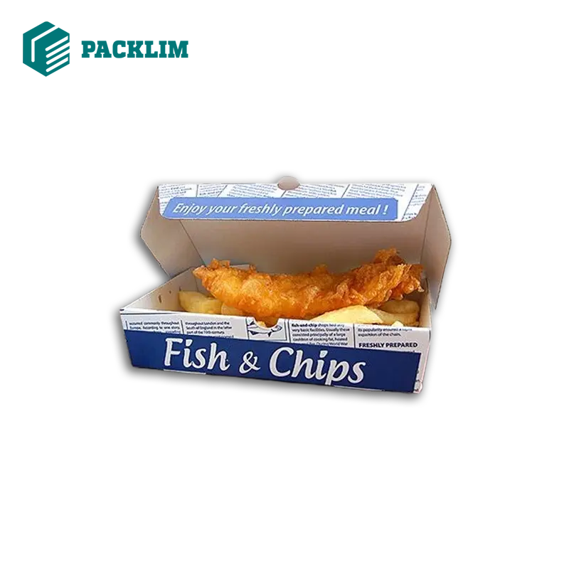 Let’s enrich the design of fish and chips boxes with exclusive design elements. Fulfill your marketing goals and reach the destination that you want to reach at in branding. We ensure the assembly of fish and chips boxes is done with the help of ISO-certified paper board including the cardboard corrugated cardboard and box board. These product boxes offer a variety of features like they are durable, leak-proof, and stylish enough to catch the attention of the audience. Packlim prepares classic cardboard boxes for eco-friendly ones. We address the needs of eco-conscious clients more effectively with the help of our fish and chips boxes that are biodegradable and compostable.